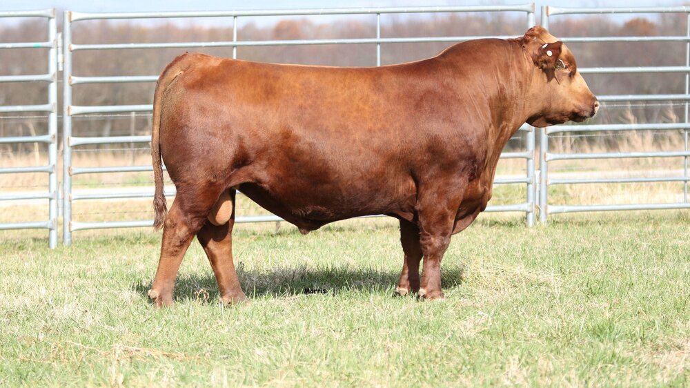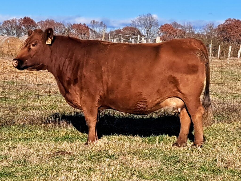 9065, along with her dam, and many half sisters, have created quite a solid reputation in herds across the Southeast. Combining her powerful brood cow phenotype and performance with the genetic potential of Brown PRA Patriot G6291, Reg. # 4141830, who ranks in the top 1% for ProS and Herdbuilder indexes and top 7 % for Gridmaster index, should yield exciting results! Recipient female is a five year old registered Red Angus , Reg. # 4447927, due on 11/14/26. Calf’s projected EPD’s and Indexes: 113 ProS, 86 HB, 27 GM, 9 CED, .8 BW, 73 WW, 116 YW, 40 Milk, 4 ME, 21 STAY, .2 MARB, 24 CW, .38 REA.